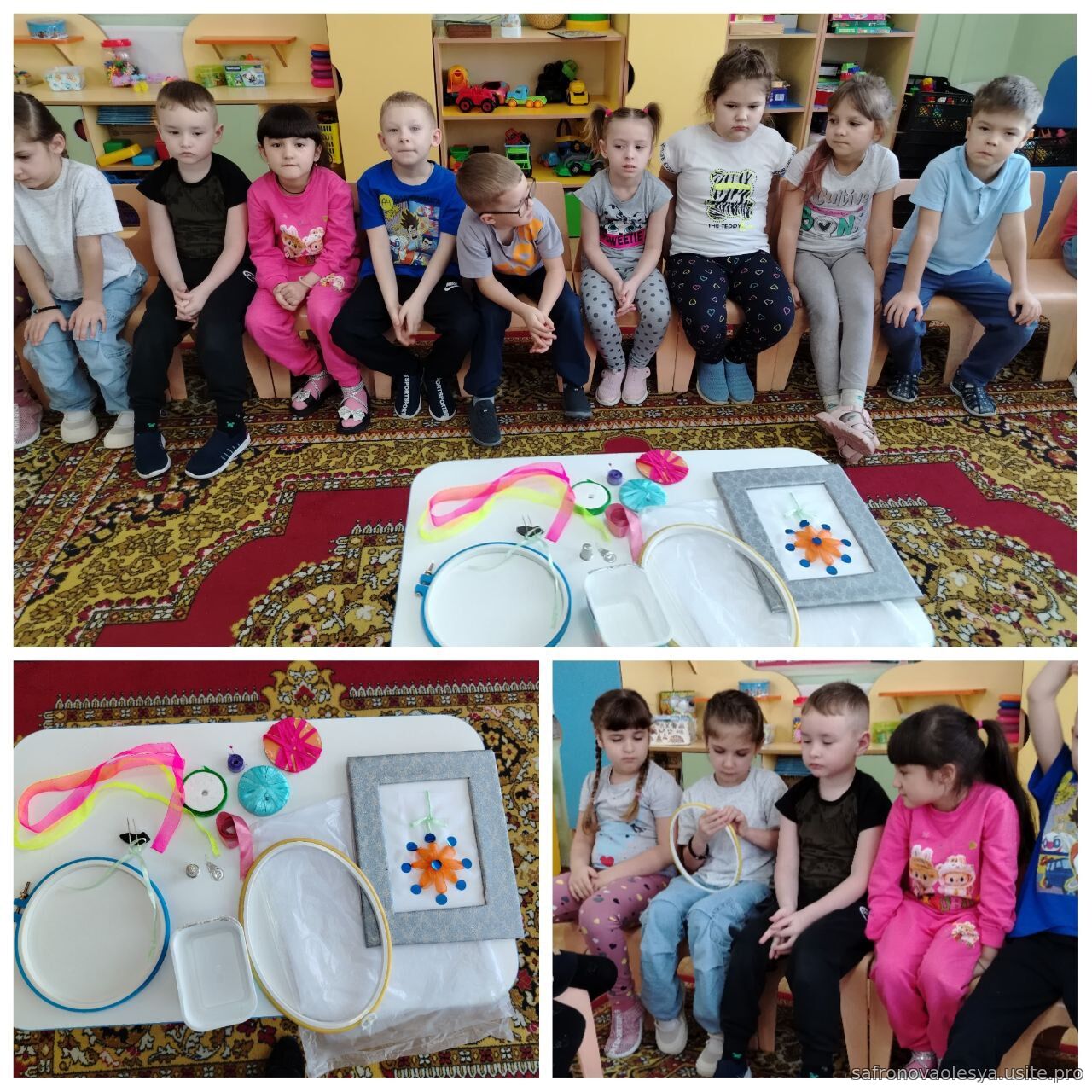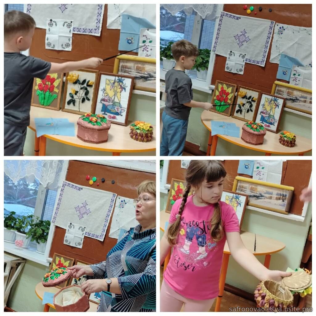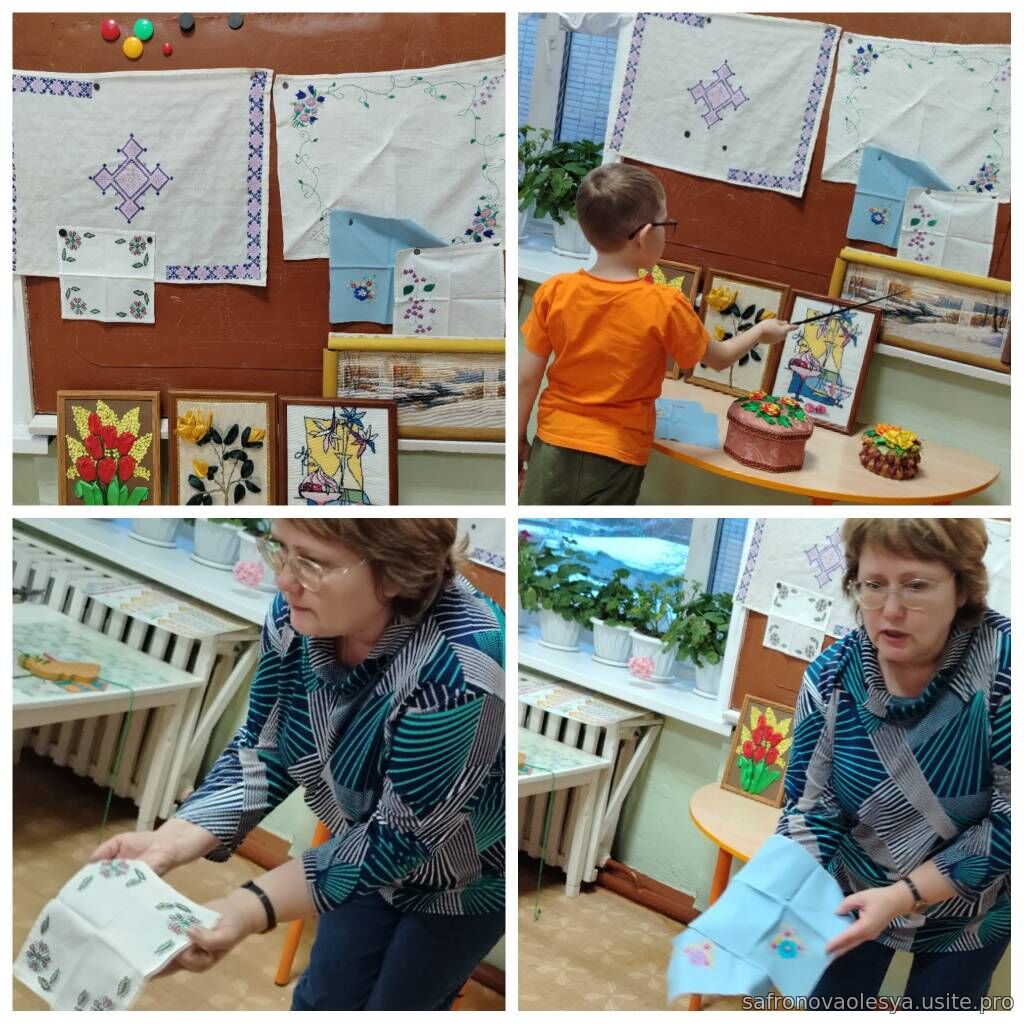 Дети познакомились с материалами используемый для вышивки и украшения предметов одежды, интерьера узнали как пользоваться пяльцами, напёрстком, иголкой. Познакомились с разными видами ниток, узнали технику безопасности при работе с этими предметами.